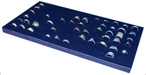 This foam ring pad has 72 slots cut to display rings and it fits in any 8 x 14 inch box or tray. Colors available include black, red, burgundy and royal blue.