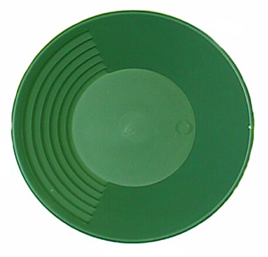 Proline 14 inch and 17 inch plastic pans have deep riffles, a wide bottom and are very popular. They are available in blue, green, and black.