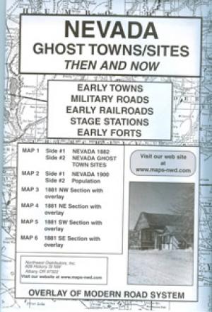 This unusual product is a must for the treasure hunter. It is unlike any other map collection in the market place. The maps of 1882 and 1900 are of excellent quality. Railroad and wagon roads are clearly defined. The map of 1900 is from the early Cram Atlas of that year. A census report for 1900, 1950 and 2000 allows the reader to know the growth or failure of many early town-sites. Nevada Ghost Town Sites map has been included through the courtesy of the Nevada Bureau of Mines. The state map of 1881 has been divided into four sections. Each section has an overlay of the modern road system printed on clear milar to create an important tool in locating early sites. The reverse side of each section touch on a small bit of history for that section.
