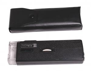 A precision illuminated pocket microscope with 30 X magnification. Focus can be adjusted by turning the wheel and the retractable condenser lens pinpoints the light on the object. Protective carry case is included. Light-Scope is 5 1/2 inches long, 2 inches high and 7/8 of an inch deep. Made in China. Uses two AA batteries which are not included.