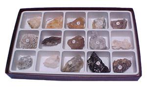 This expanded collection allows a study in detail of the response of these minerals to ultraviolet light. Some respond to shortwave, some to longwave and some to both. Kit is 7 x 11 inches with 15 samples of minerals. The mineral samples are about 1 1/2 x 1 1/2 inches. By Hubbard Scientific.