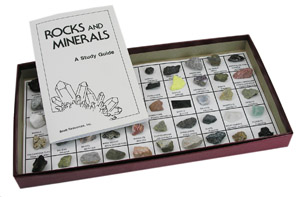 Excellent reference collection and a valuable aid in identifying and comparing common, and rare rocks and minerals. These mounted collections display and identify common minerals and igneous, sedimentary and metamorphic rock. Each set is attractively boxed and includes a 15 page book, Rocks and Minerals A Study Guide.