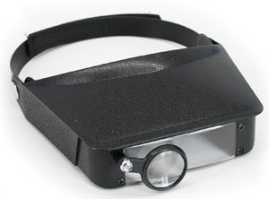 These cap style magnifiers have a one size-fits-all velcro style closure to firmly but comfortably attach the magnifier to your head for hands free work. Cap style magnifiers have a fixed standard three dimensional lens and a fold-in fold-out snap action secondary lens. Perfect for working with fine gold, jewelry, examining ore specimens or any close up work where hands free magnification is required. The primary lens has a 1.8 X magnification, second lens brings the total magnification to 2.3 X, and an additional one inch round magnifier swings down to provide a total possible magnification of 3.7 X or 4.8 X . Weighs approx. 110 grams.