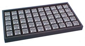 This black plastic stack tray comes complete with 50 of the 4x display boxes.