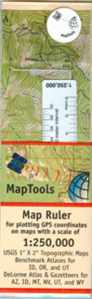 The following map scales are used on various topo maps to locate exact latitude and longitude coordinates for any spot on the map. The various scales are outlined below with a description of the USGS and DELORME maps that they will work on. Each of these individual map scales can be used to locate either latitude-longitude or UTM coordinates. They are packaged in a protective plastic case with detailed instructions.