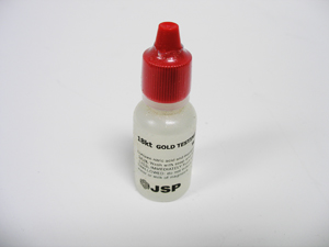 Gold testing acids in handy 1/2 ounce plastic squeeze bottles. No mixing or pouring. Use in conjunction with a gold test stone.